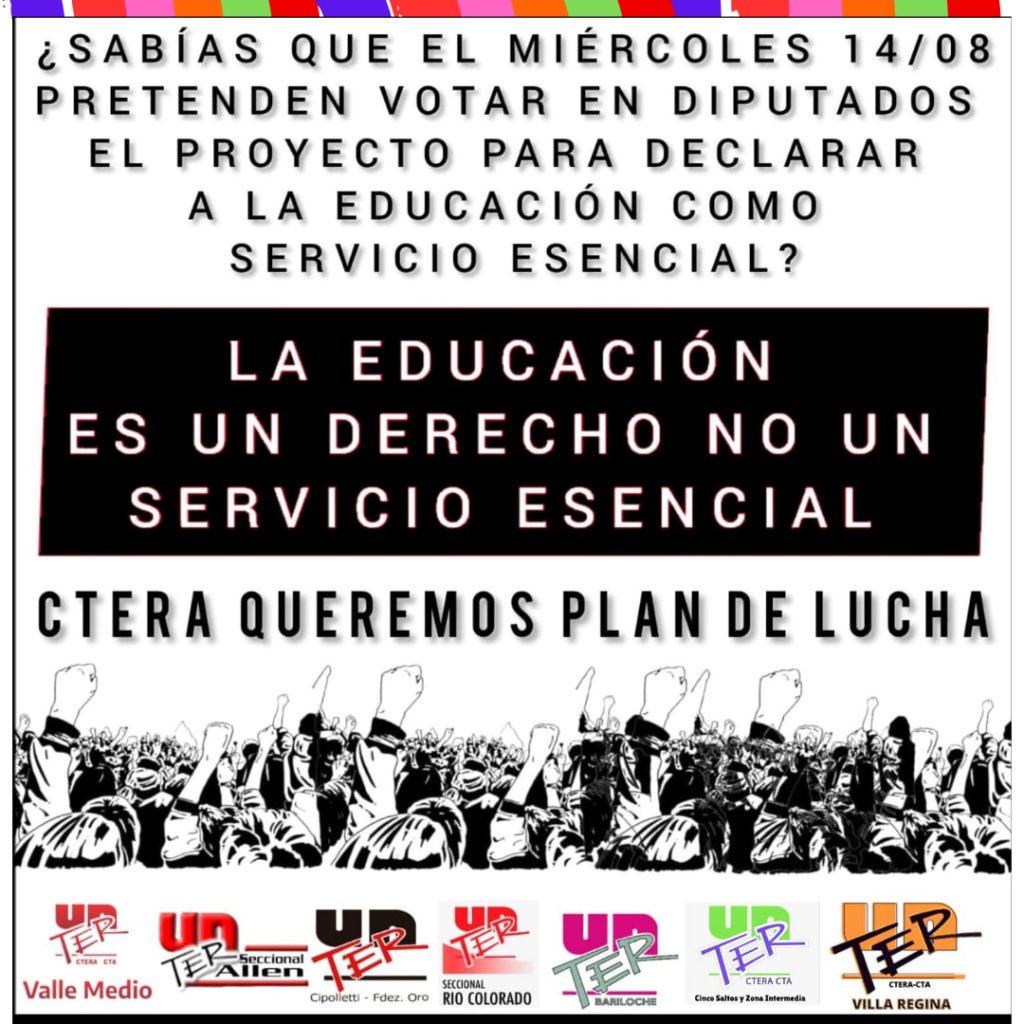 La Unión de Trabajadores de la Educación de Río Negro (UnTER) ha convocado a un paro nacional y una manifestación en el Congreso Nacional para el 14 de agosto. Esta medida se toma en respuesta a un proyecto de ley que busca restringir los derechos laborales de los docentes, especialmente el derecho a huelga.