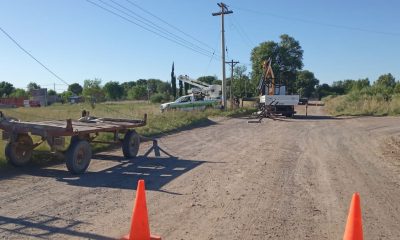 Personal de la CEARC realiza tareas de cambio de postes sobre la línea de 13200 Kw, en el ingreso a Colonia Contin. El reemplazo se debe...