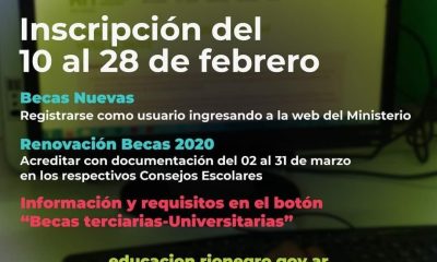 Hoy, 10 de febrero, se inicia la convocatoria para Becas Terciarias-Universitarias rionegrinas 2022 El formulario de inscripción para la solicitud de Becas Nuevas quedará habilitado a...