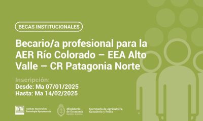 El Instituto Nacional de Tecnología Agropecuaria (INTA) abrió la convocatoria para la Beca Profesional AER Río Colorado, destinada a profesionales del área agronómica. La inscripción estará...