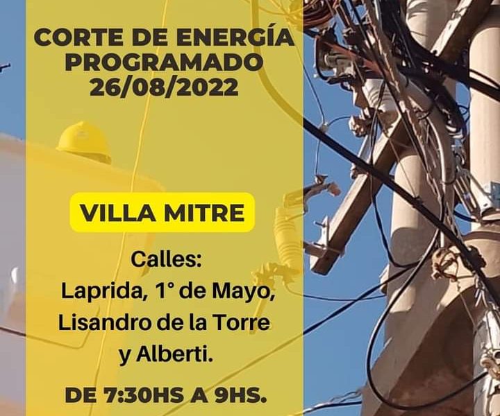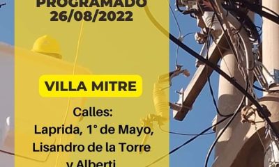 Será mañana viernes 26 de agosto y por tareas de mantenimiento preventivo en la línea de Media Tensión.El corte de energía se extenderá entre las 7:30...