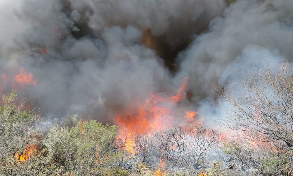 Un incendio de campo comenzó sobre Ruta Provincial 57 camino a Pichi Mahuida, a 25 km de Río Colorado. El fuego afecto 4000 x 100 mts...