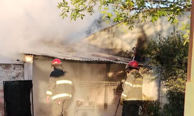 Hoy 06:50 hs. intervinieron 2 dotaciones a calle Roca al 800 a incendio sobre depósito de 5 x 3 mts. Construcción techo chapa zinc y tiranteria...
