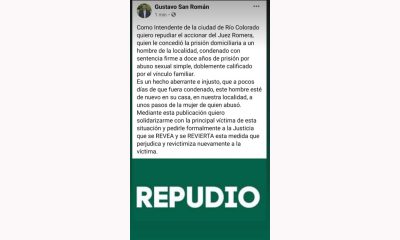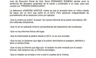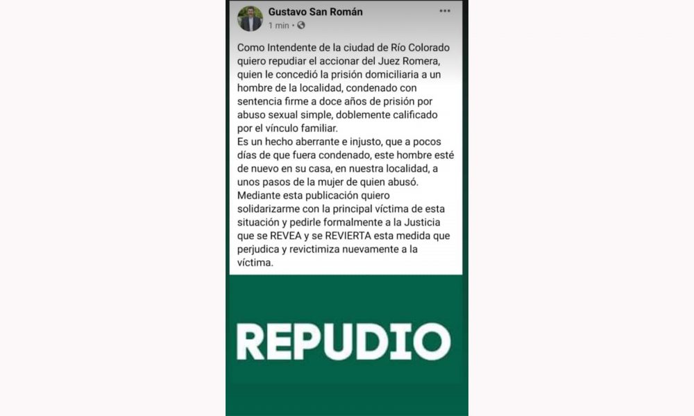 El Concejo Deliberante de Río Colorado, con la firma de todos sus integrantes repudió la decisión del juez Romera. Lo propio hizo el jefe comunal Gustavo...