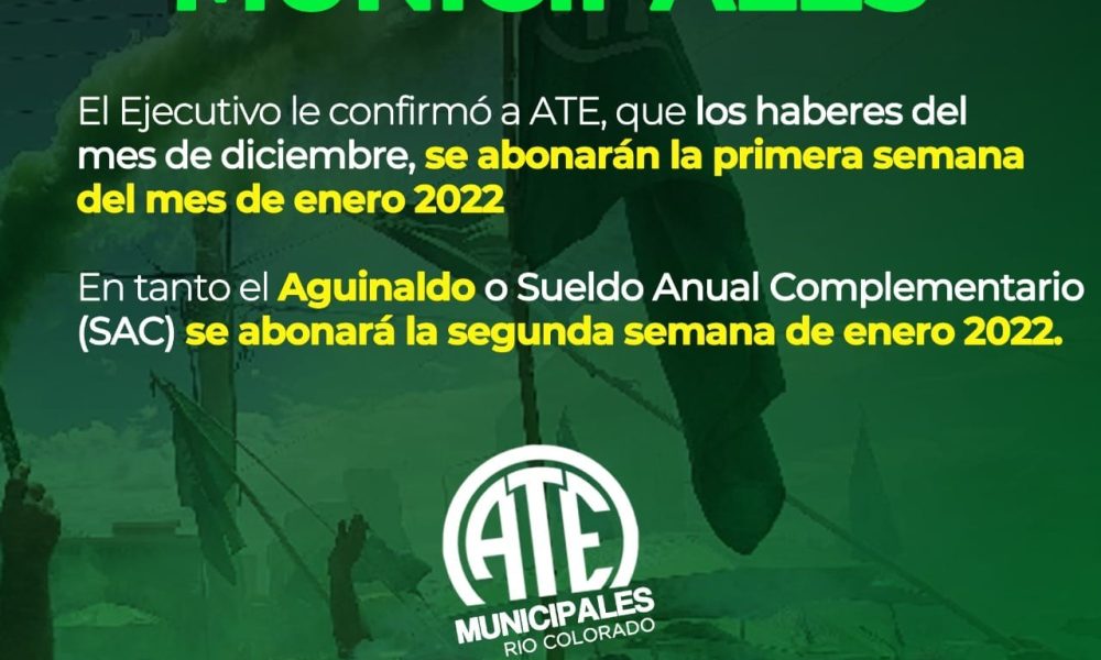 El sectorial de Trabajadores Municipales de RC afiliados a la Asociación de Trabajadores del Estado ATE, informó que de acuerdo al diálogo permanente con el Ejecutivo...